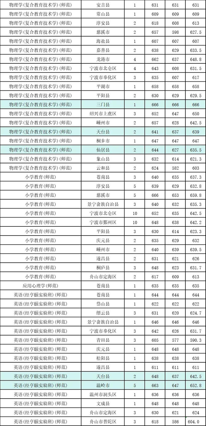 2024年师范类定向录取分数创造了多个新高,高考成绩在浙江省10000名以内(656分以上)的考生有26人,其中最高分为670分,对应位次号为4889名。
