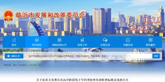 为切实规范临沂市校外培训机构收费行为,有效减轻学生家庭负担,维护群众合法权益,在前期调研和成本监审的基础上,市发展改革委会同市教育局研究拟定了《关于义务教育及高中阶段线下学科类校外培训收费标准的通知(征求意见稿)》,现公开向社会征集意见和建议。如有意见或建议,请于12月28日前通过电话、电子邮件等形式反馈至市发展改革委(成本调查监审科)。公示期:2021年12月22日至12月28日;电话:8727883;电子邮箱:sfgwcbdcjsk@ly.shandong.cn。