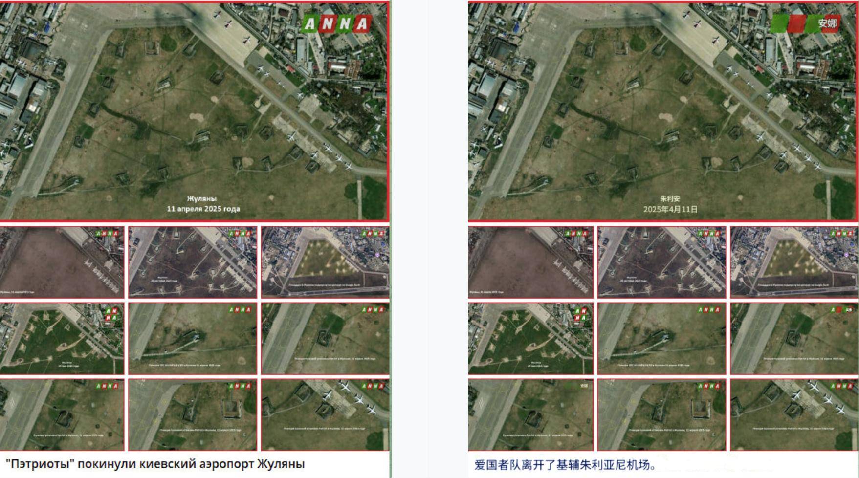 乌克兰朱利亚纳机场为基辅防空系统的主要节点之一,本来部署有“爱国者”防空系统,最早可能在2023年5月开始部署,明确的部署时间为2023年9月,能部署了多达三套"爱国者"系统。如今被发现已经撤走了,在2025年4月的卫星照片中只有空无一人的阵地,只剩下一些被遗弃的设备,估计为战斗中损失后被放弃的残骸。