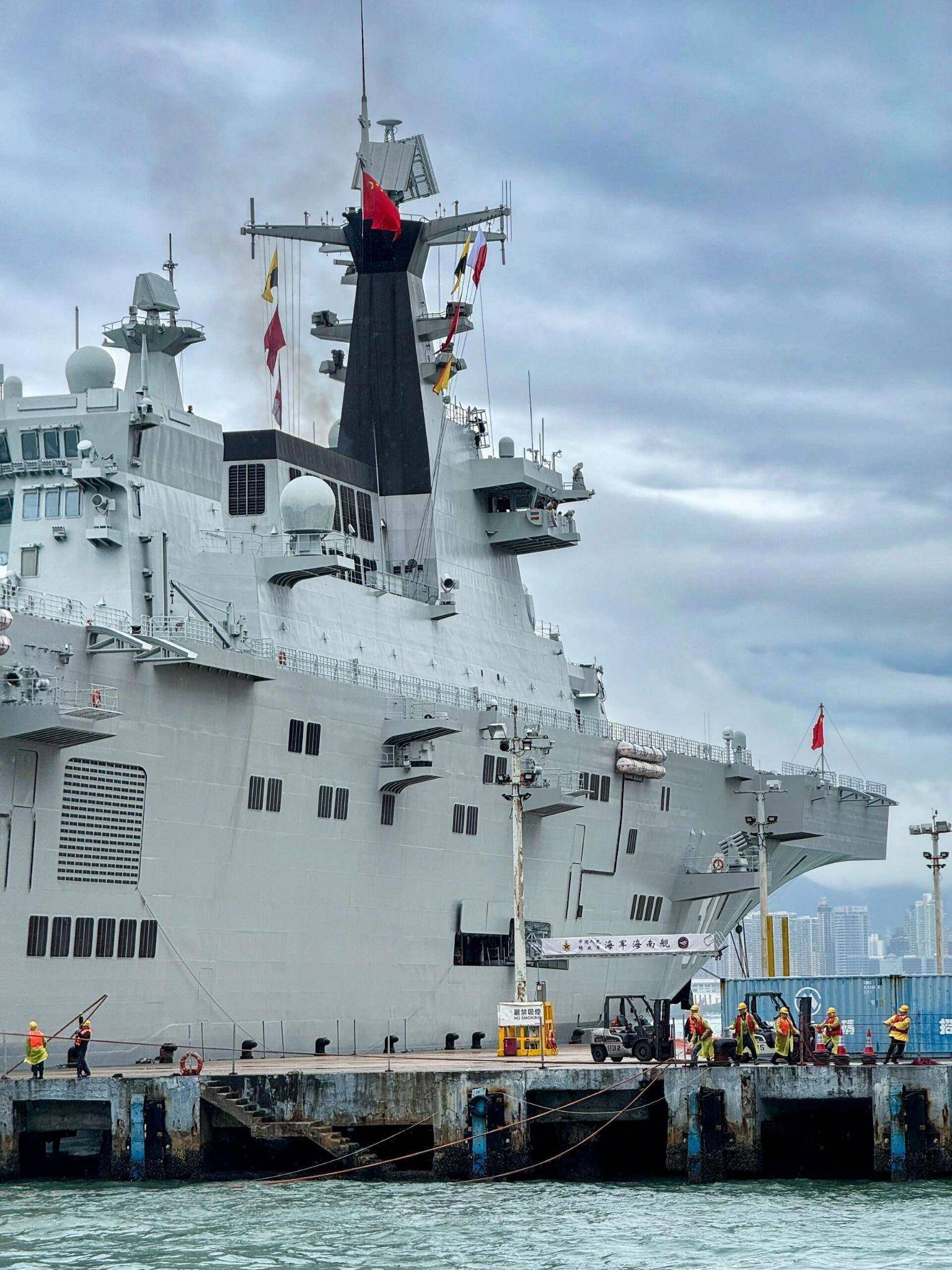 通过对076本身舰体建造水平,甲板工艺,还有舰上的各类舾装设备的整合,明显比075更为紧凑和合理。尤其是考虑到最为迫切的台海局势,这种相对复杂的作战情况,076的自卫装备明显要比075有进一步的提升,3座海红旗-10防空导弹,3座1130近防炮,,都要比075型要多,按照各自的防空角度进行戒备,防御密度更高。还有4座32联装,与055万吨大驱同款的主动干扰弹发射器,使得076的整体防御水平,要比075再上一个台阶。再加上全方位立体电子战系统,使得076的主动和被动防御水平都不输于全球主流航母。
