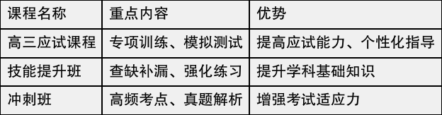另外,师大中高教育专注于各种课程,包括高考复读、高三应届生冲刺、艺术生文化课等,为不同需求的学生提供精细化指导。通过严格的管理制度和系统化教学体系,他们帮助学生解决学习和生活中的各种问题,为考上理想大学打下坚实基础。